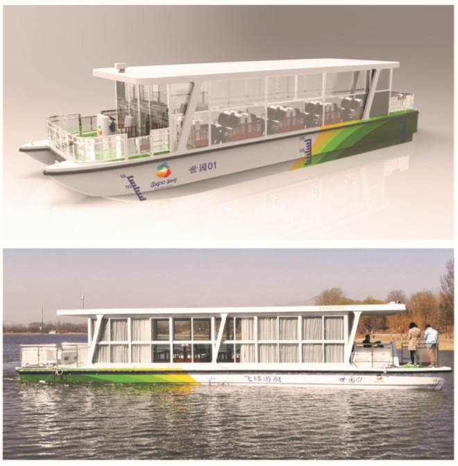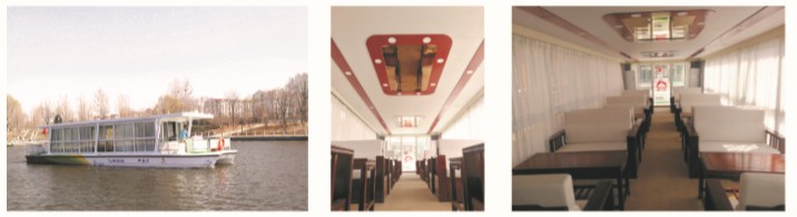 該款船型外觀借鑒遠(yuǎn)洋航行船舶,線型流暢,雙體結(jié)構(gòu),水阻小,穩(wěn)性好,抗風(fēng),能力強(qiáng)。